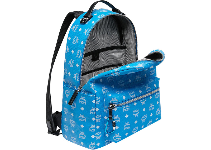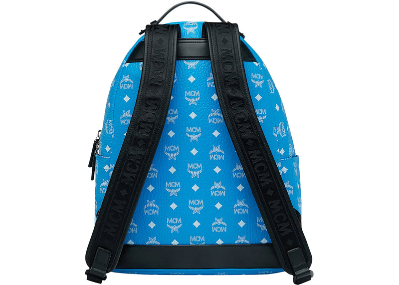The MCM Stark Backpack White Visetos T Blue is now available at Side Kicks!