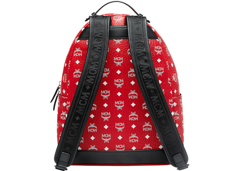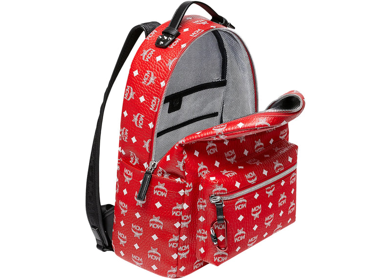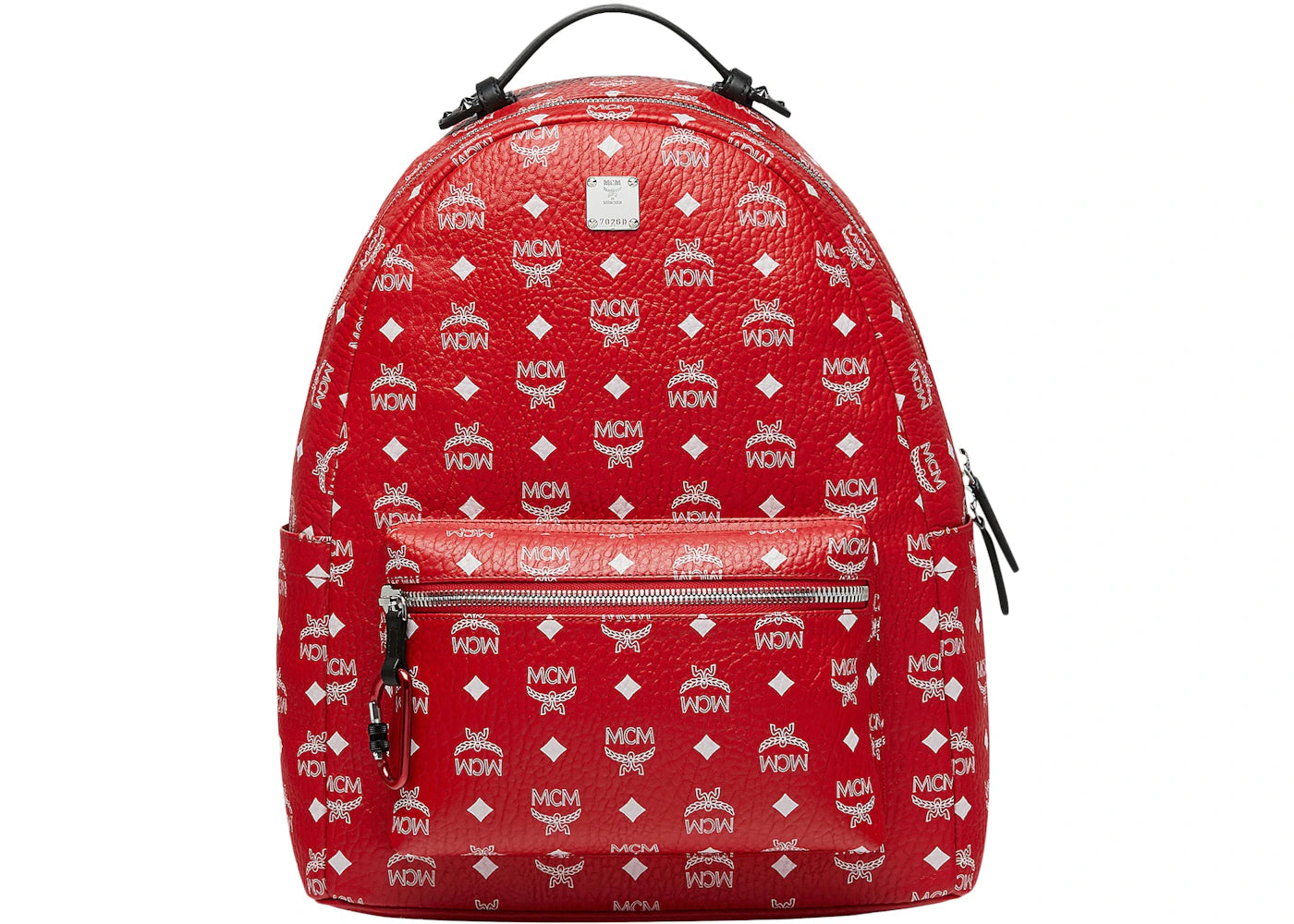 The MCM Stark Backpack White Visetos Viva Red is now available at Side Kicks!