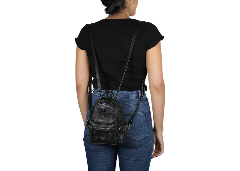 MCM Stark Bebe Boo Backpack Visetos Side Studs X-Mini Black