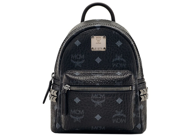 The MCM Stark Bebe Boo Backpack Visetos Side Studs X-Mini Black is now available at Side Kicks!