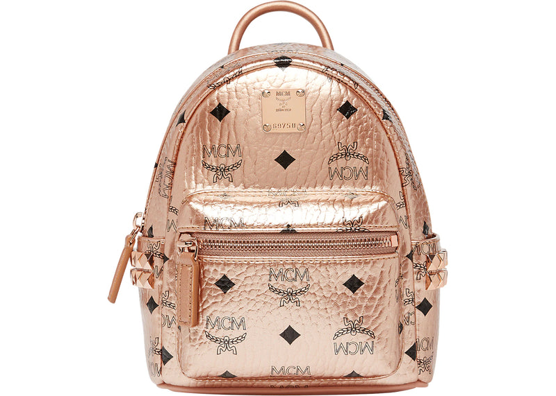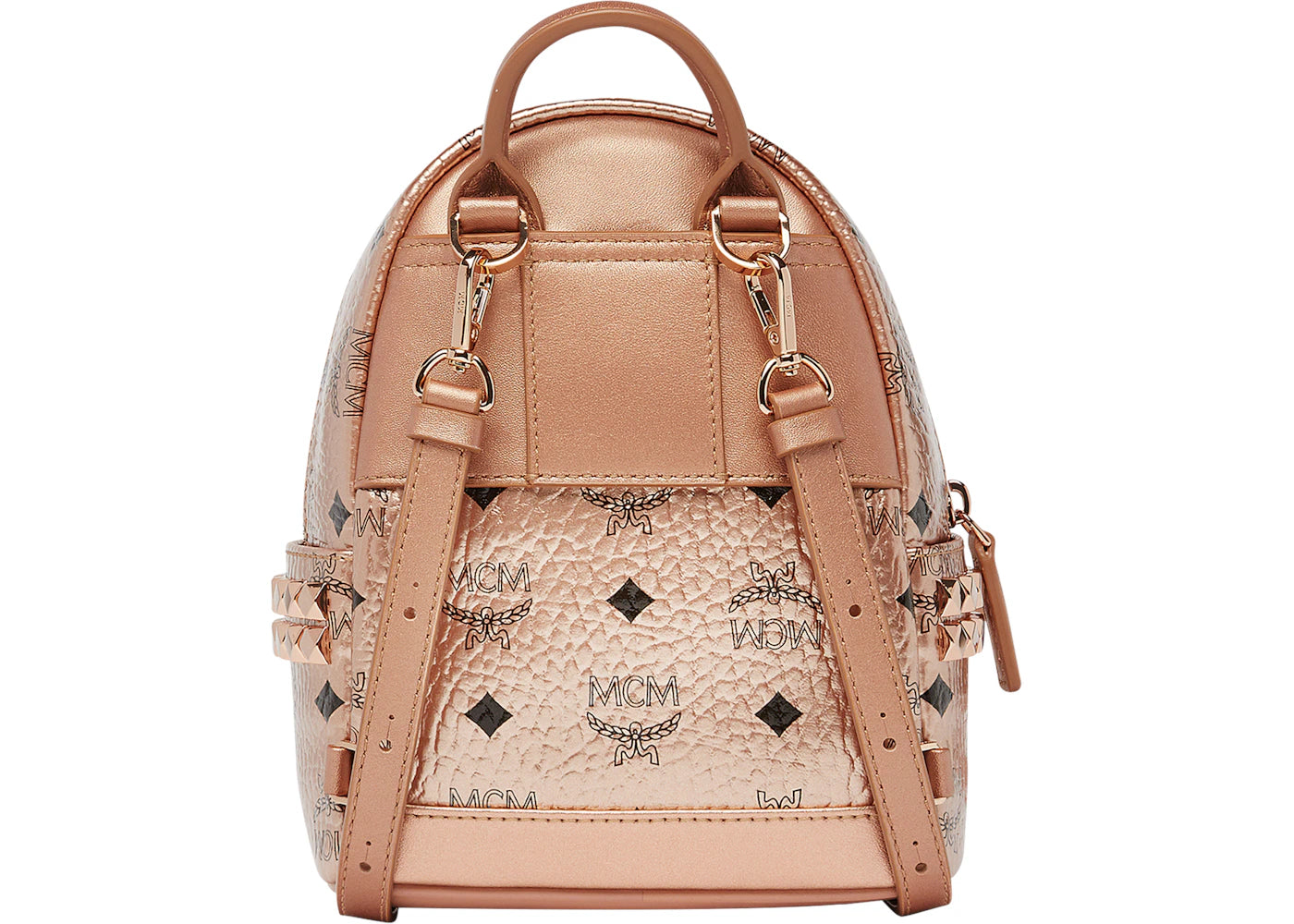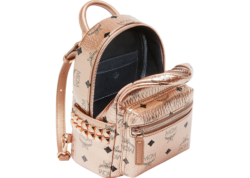 MCM Stark Bebe Boo Backpack Visetos Side Studs X-Mini Champagne Gold