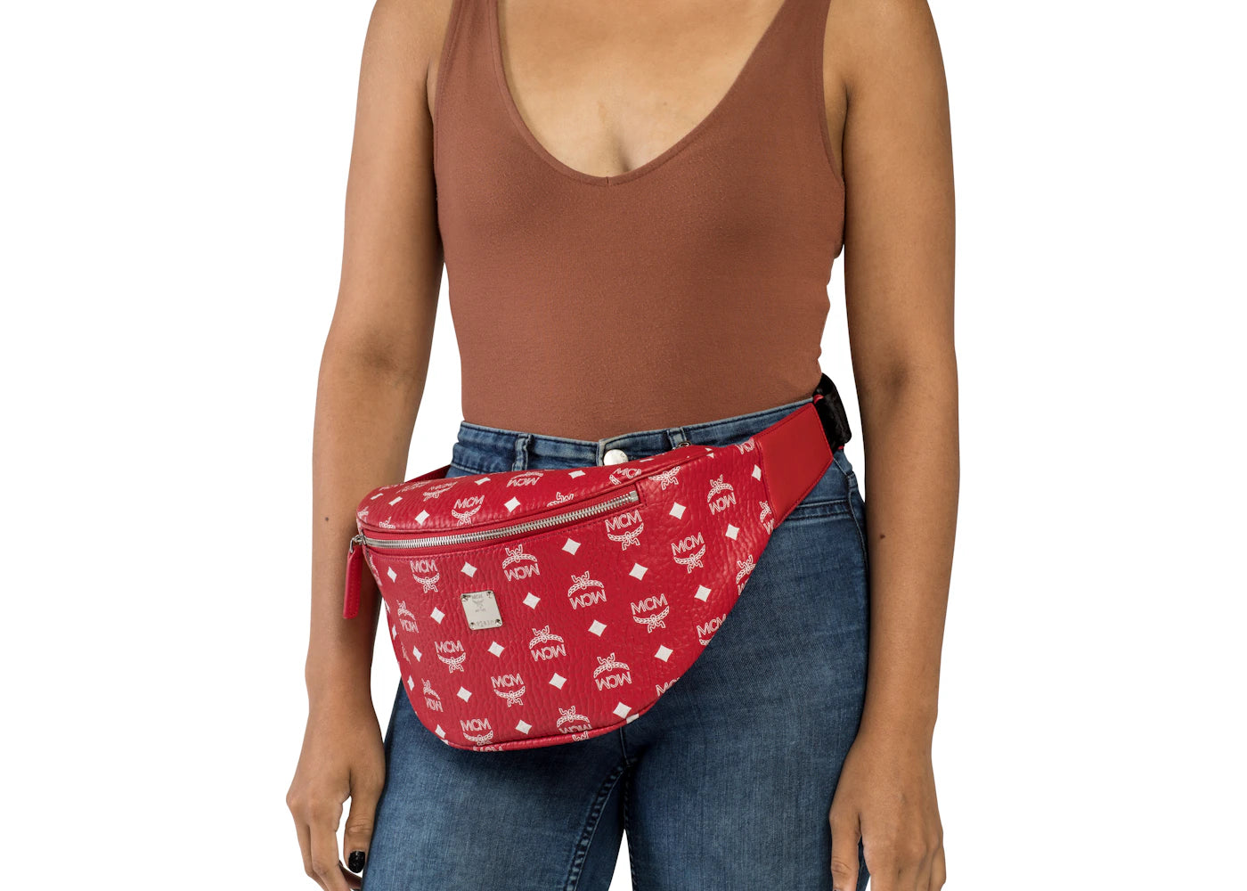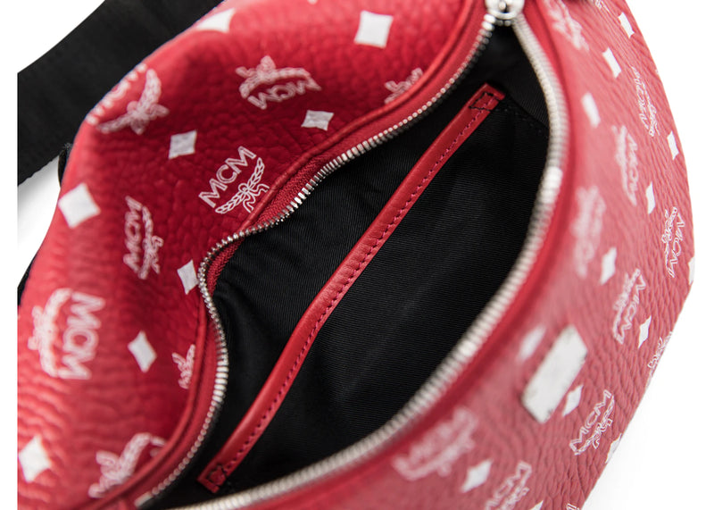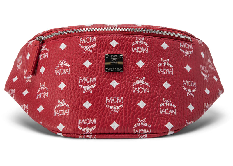 The MCM Stark Belt Bag Visetos Medium Ruby Red/White is now available at Side Kicks!