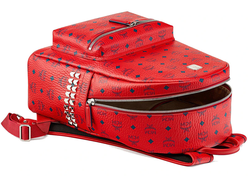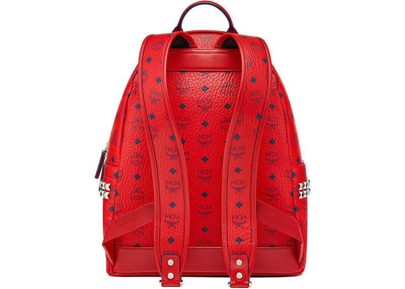 MCM Stark Side Studs Backpack Visetos Monogram Candy Red