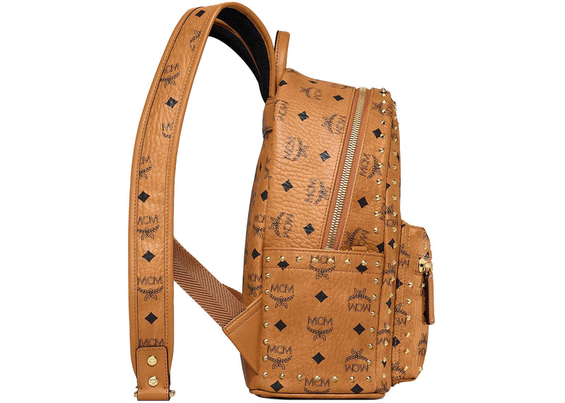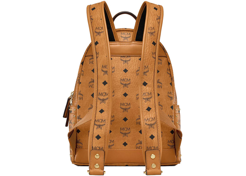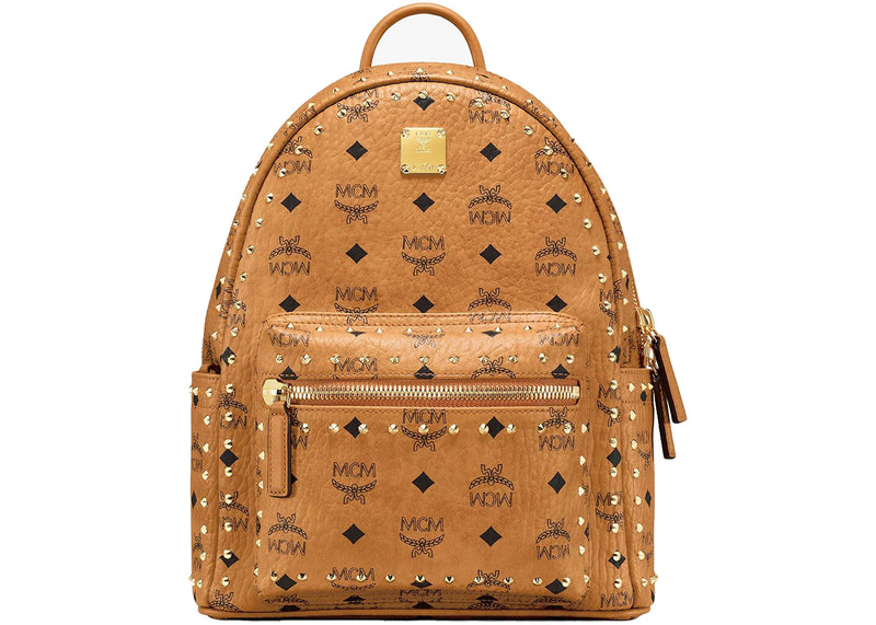 MCM Stark Studded Outline Backpack Visetos Cognac