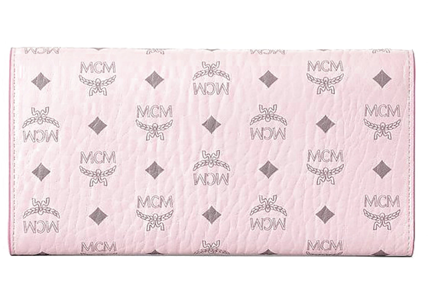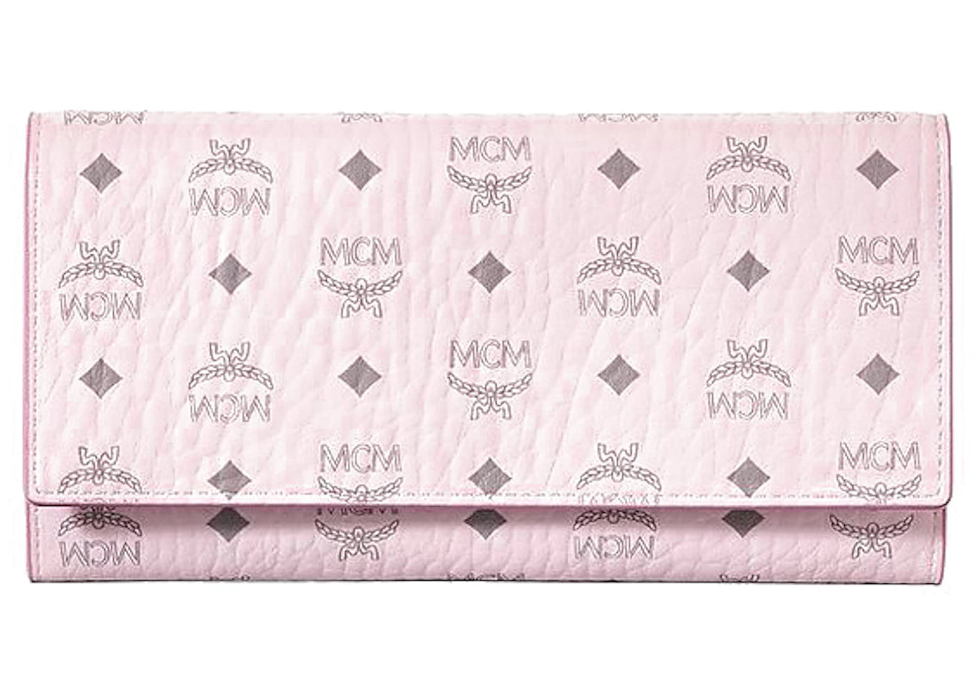 The MCM Trifold Wallet Large Visetos Powder Pink is now available at Side Kicks!