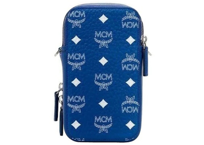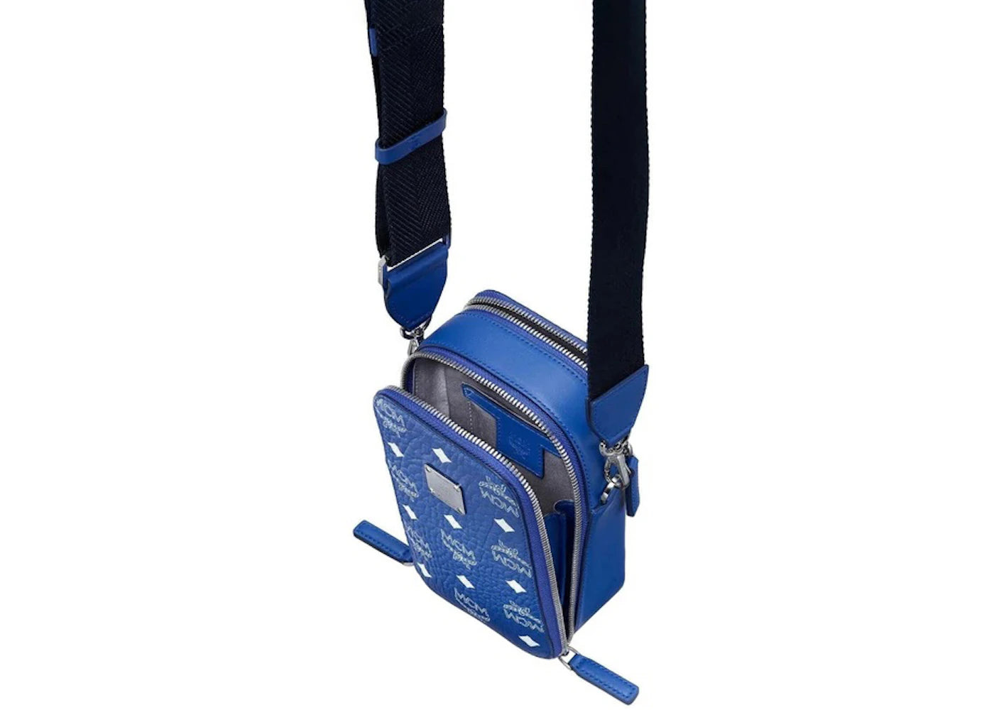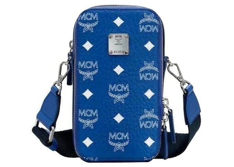 The MCM Visetos Crossbody Camera Bag Blue/White is now available at Side Kicks!