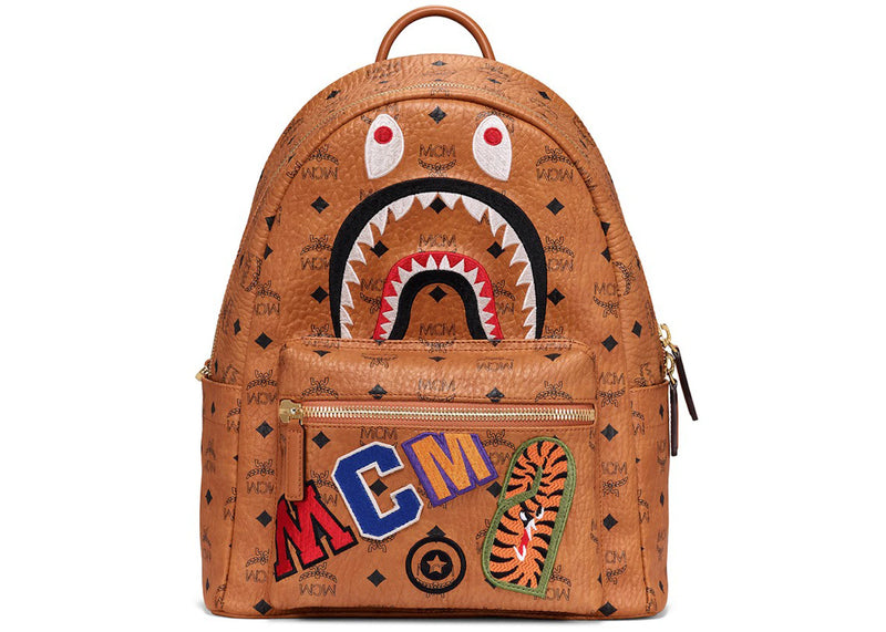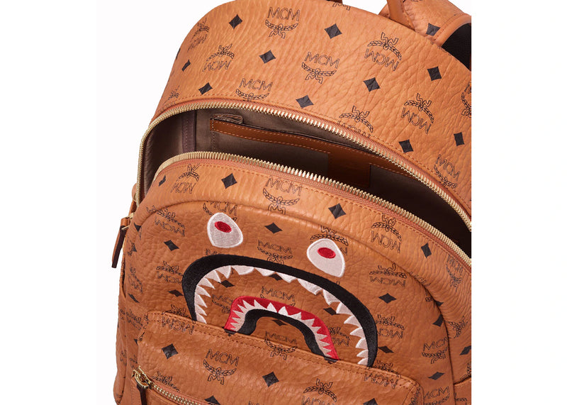 MCM x BAPE Shark Stark Backpack Visetos Cognac