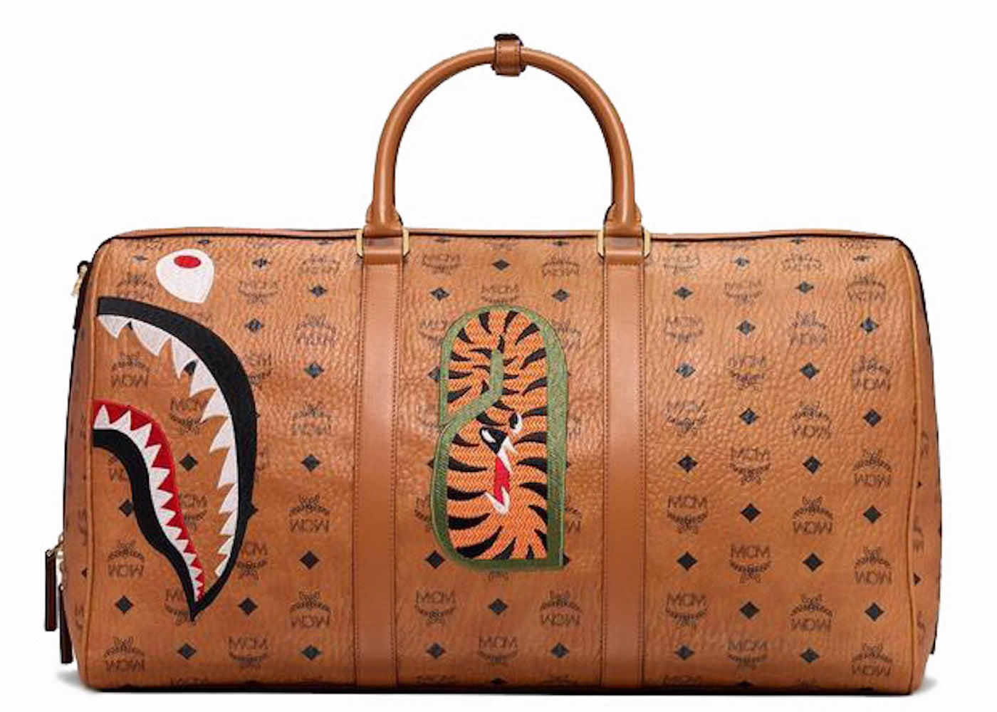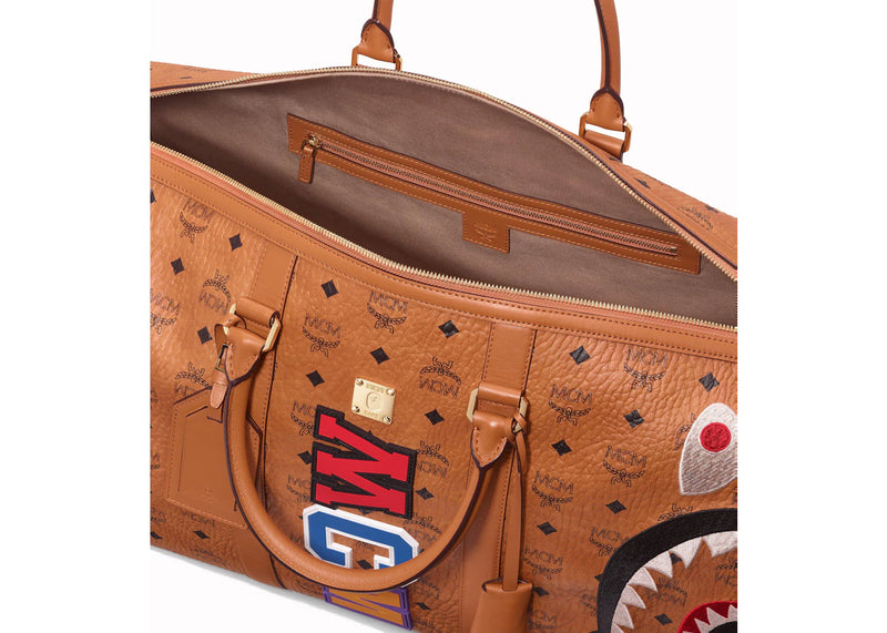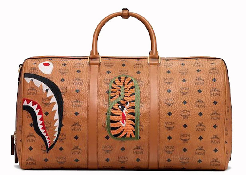 The MCM x BAPE Shark Weekender Visetos Cognac is now available at Side Kicks!