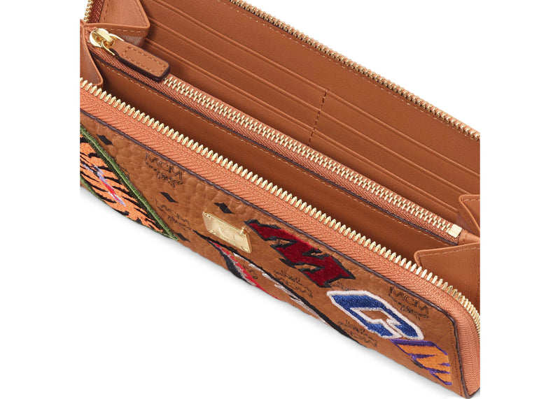 MCM x BAPE Shark Zip Around Wallet Visetos Large Cognac