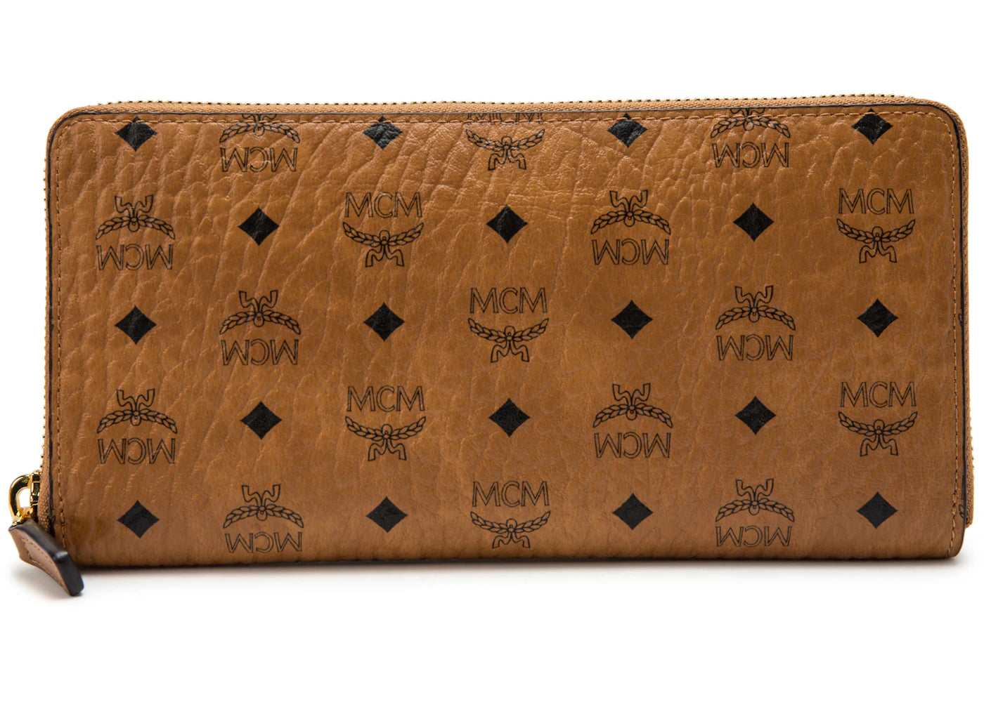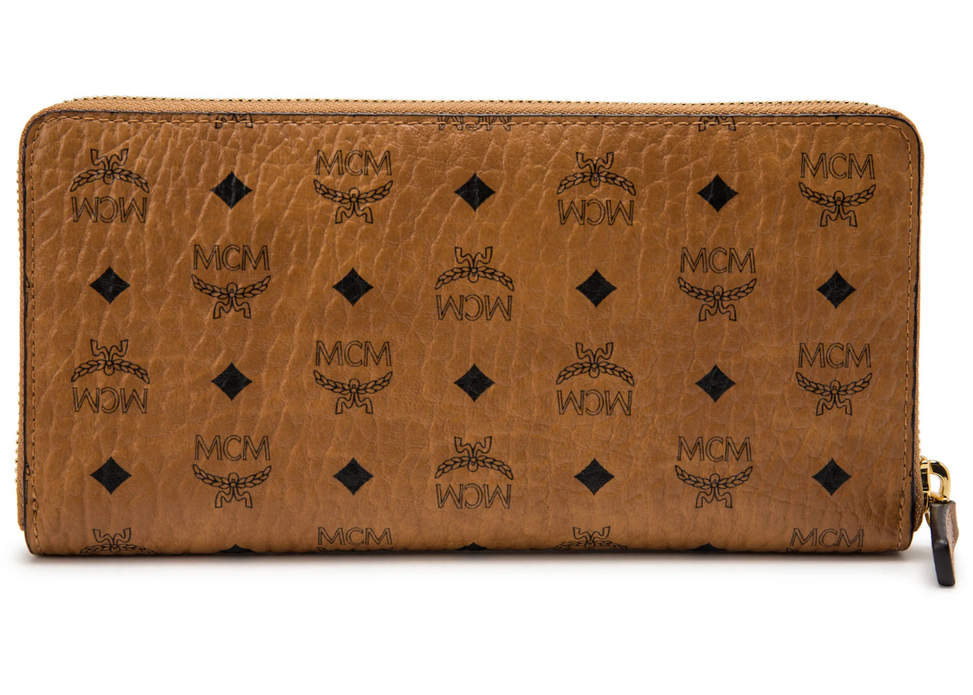 MCM Zip Around Wallet Original Visetos Large Cognac