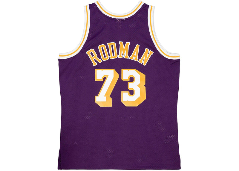The Mitchell & Ness Dennis Rodman Los Angeles Lakers Road 1998-99 Swingman NBA Jersey Purple is now available at Side Kicks!