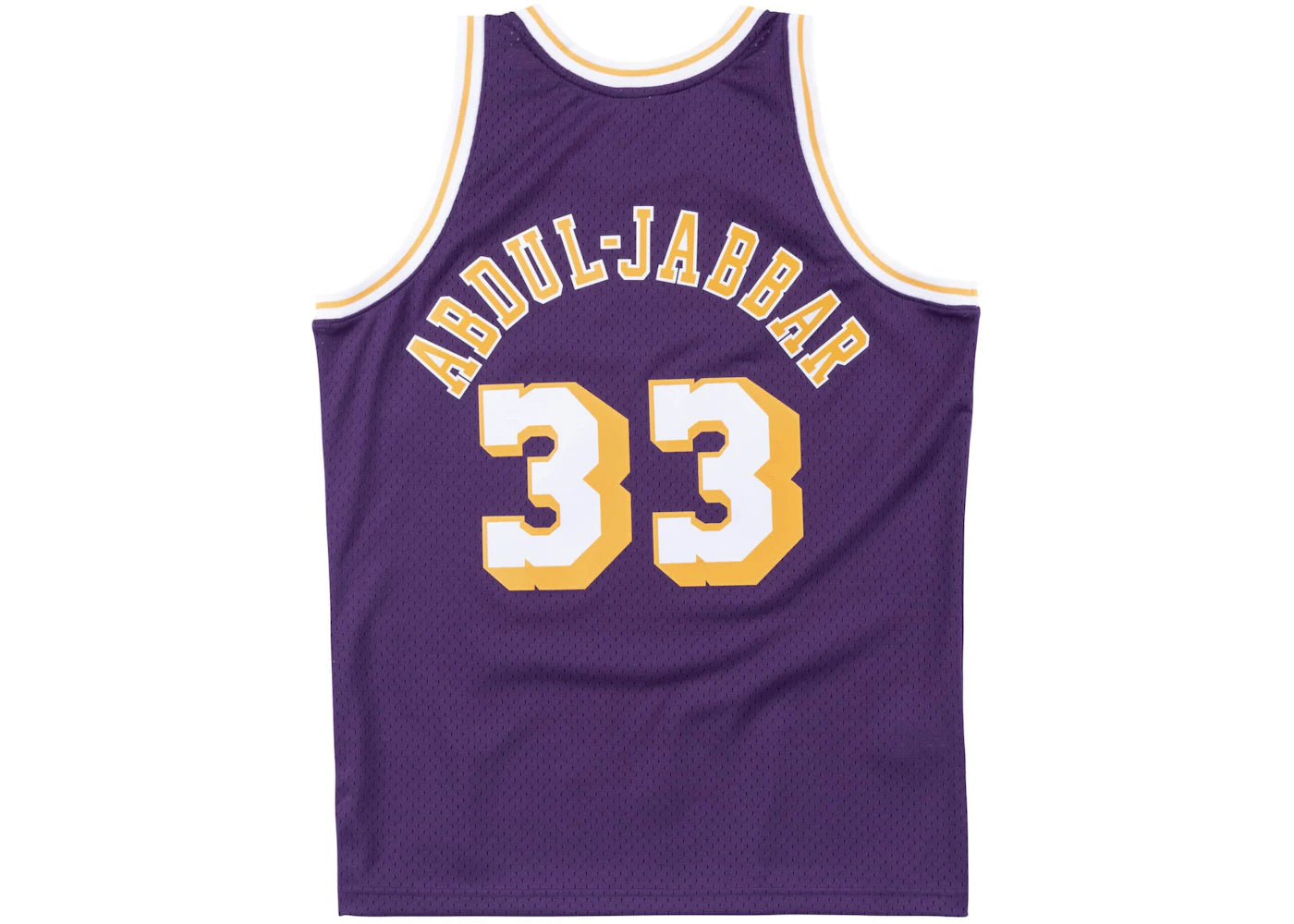 The Mitchell & Ness Los Angeles Lakers Away 1983-84 Kareem Abdul-Jabbar Swingman Jersey Purple is now available at Side Kicks!