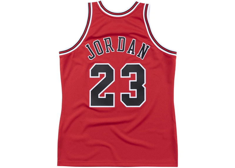 The Mitchell & Ness Michael Jordan Chicago Bulls 1996-97 Road Authentic NBA Jersey Red/Black/White is now available at Side Kicks!