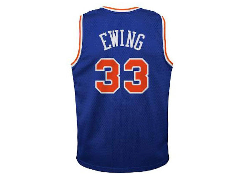 The Mitchell & Ness NBA Kids New York Knicks Patrick Ewing 1991-1992 Swingman Road Jersey Blue/Orange is now available at Side Kicks!