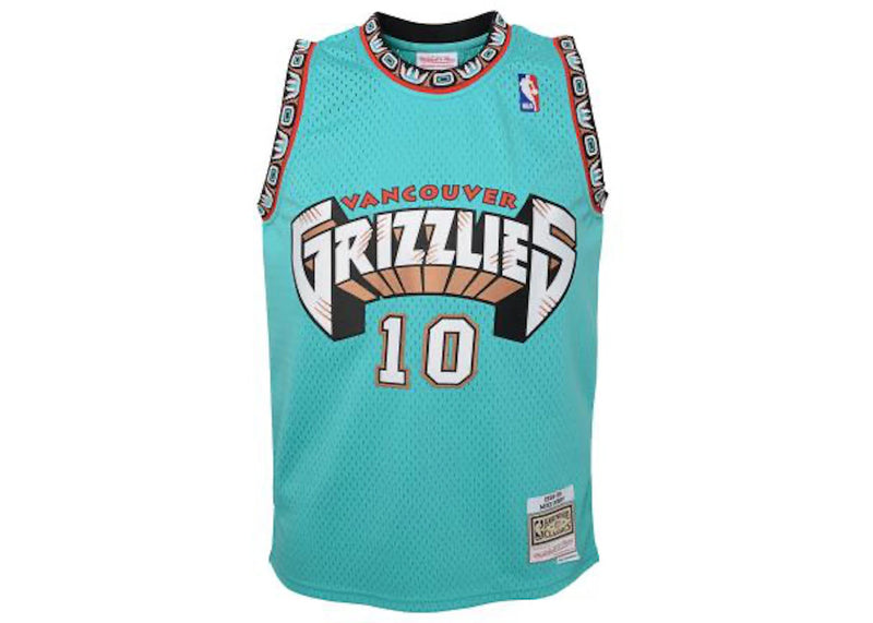 The Mitchell & Ness NBA Kids Vancouver Grizzlies Mike Bibby 1998-99 Swingman Road Jersey Teal is now available at Side Kicks!