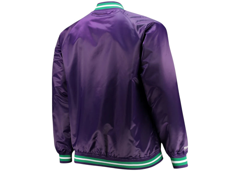 The Mitchell & Ness x NBA Big & Tall 1995 All-Star Game Hardwood Classics Satin Full-Snap Jacket Purple is now available at Side Kicks!