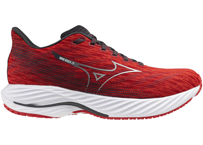 The Mizuno Wave Rider 28 High Risk Red White is now available at Side Kicks!