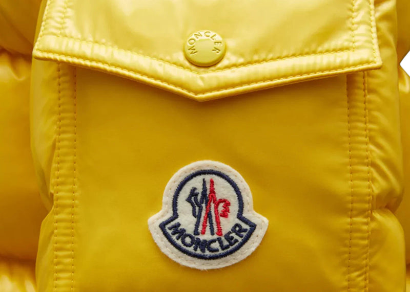 The Moncler Boy's New Maya Short Down Kid's Jacket Mustard Yellow is now available at Side Kicks!