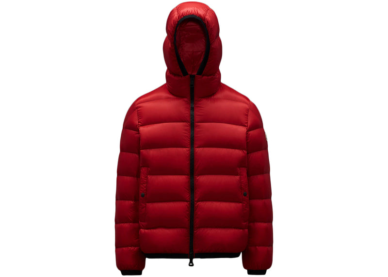 The Moncler Myosotis Short Down Jacket Scarlet Red is now available at Side Kicks!