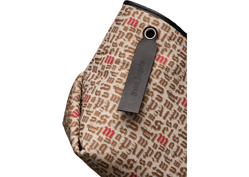 The Moncler x Palm Angels Printed Tote Bag Logo Pattern Jacquard Beige/Black is now available at Side Kicks!