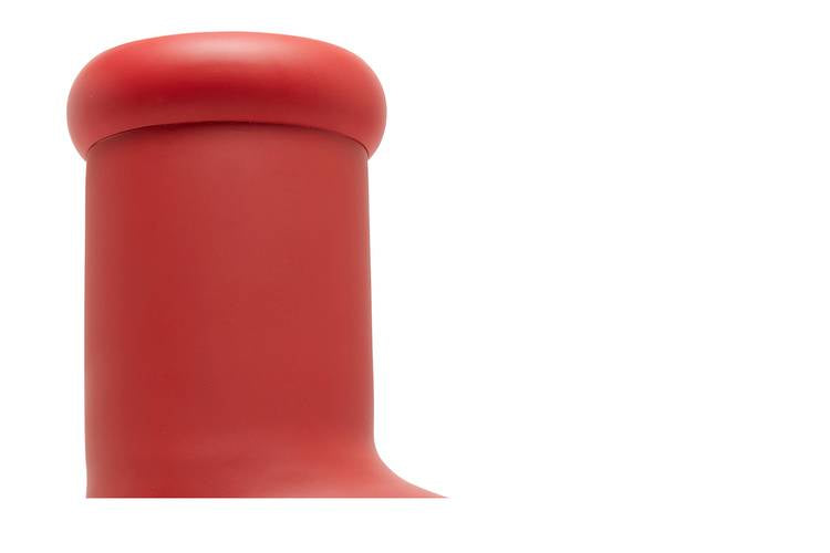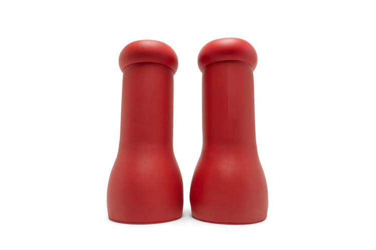 The MSCHF Big Red Boot is a cartoonishly proportioned high-top created by the Brooklyn-based collective. The boot features a straightforward crimson hue, single-mold-shell design, and sturdy TPU rubber construction. With a padded midcalf collar and flat EVA outsole, the boot is both whimsical and functional. Inspired by classic cartoon and game shoe designs, these boots are a bold statement piece.