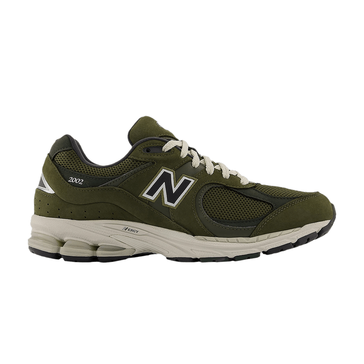 The New Balance 2002R Year of the Ox features suede uppers in subtle tones, paired with a dark olive tongue and silver "New Balance" branding. Black laces complement the design, while the sidewalls display a bold "N" logo and "2002R" branding on the back quarters. A black "NERGY" midsole ensures support, with cream nubuck accents on the toebox and heel tab. The insole includes an OX-shaped graphic.