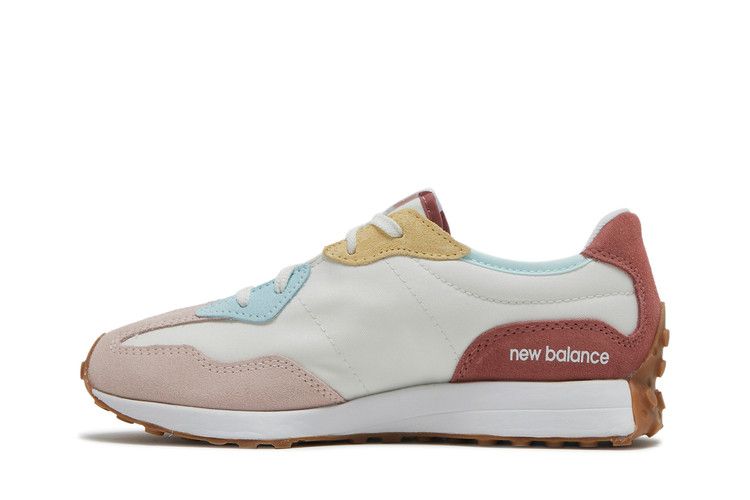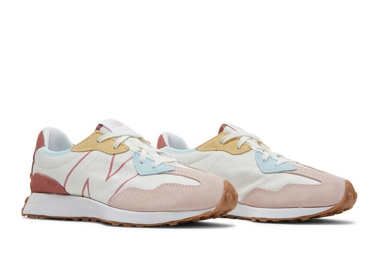 The New Balance 327 White Oyster Pink Gum (GS) is now available at Side Kicks!