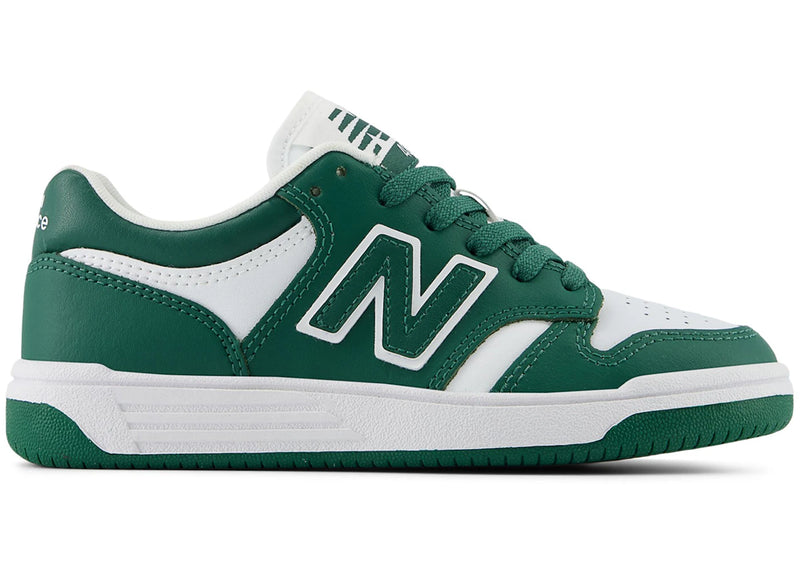 The New Balance 480 Team Forest Green White (PS) is now available at Side Kicks!