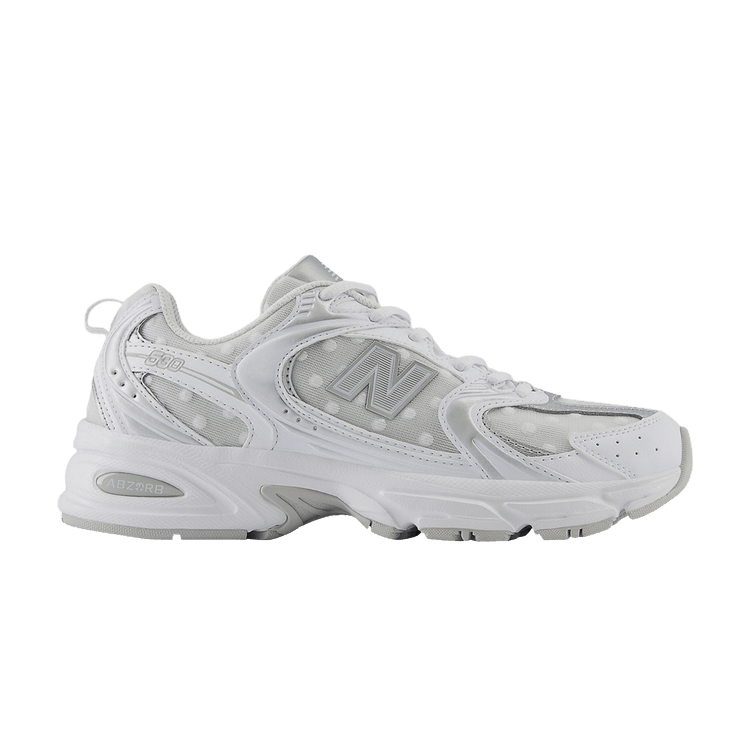 The New Balance 530 Silver Metallic Polka Dots is now available at Side Kicks!