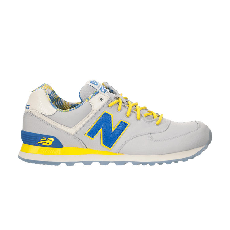 The New Balance 574 Island Pack Grey Blue Yellow is now available at Side Kicks!