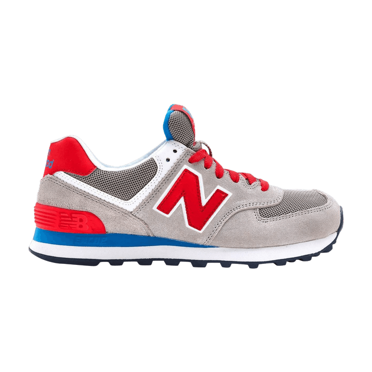 The New Balance 574 Light Grey Red (Women's) is now available at Side Kicks!