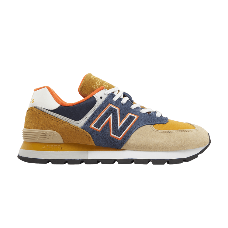 The New Balance 574 Rugged Brown Navy is now available at Side Kicks!