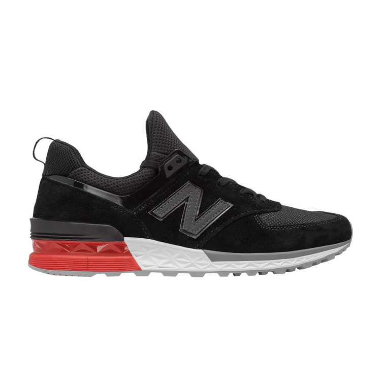 The New Balance 574 Sport features a white and red premium suede and mesh upper with 3M reflective "N" logos. It includes a Fresh Foam cushioned midsole with black and...