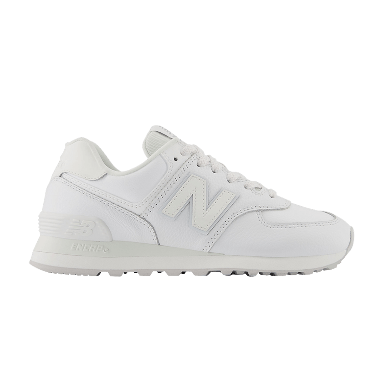 The New Balance 574 Triple White Leather (Women's) is now available at Side Kicks!