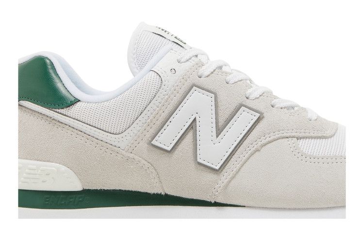 The New Balance 574 White Green Gum is now available at Side Kicks!