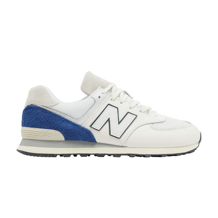 The New Balance 574 White Royal Blue is now available at Side Kicks!