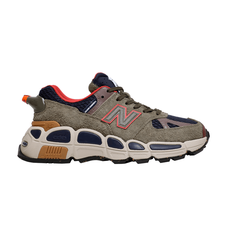 The New Balance Yurt 574 Salehe Bembury Forest Green has a navy mesh upper with Forest Green suede and light brown smooth leather overlays. An extended heel unit doubles as a whistle, while the responsive sole incorporates Abzorb and Rollbar technology. Released on October 2021, the New Balance Yurt 574 Salehe Bembury Forest Green is available now at Side Kicks.