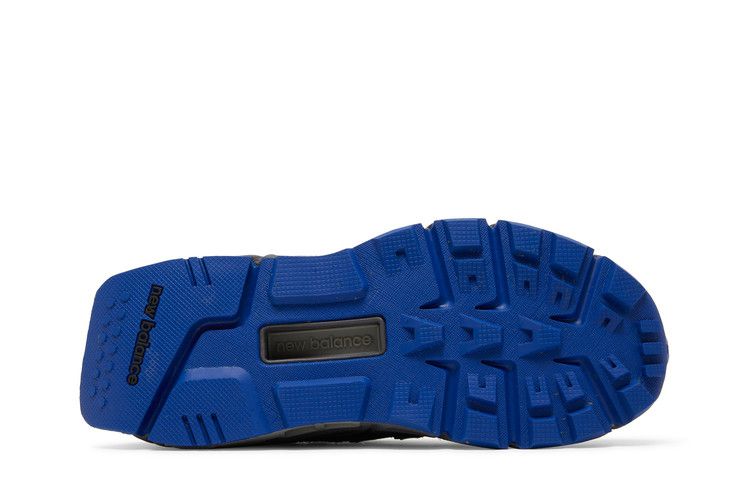 The New Balance 574 YURT Salehe Bembury Grey features a grey upper with purplish blue and pink accents, paired with a blue and black outsole. The design includes a functional whistle at the bottom. Released on April 2022, the New Balance 574 YURT Salehe Bembury Grey is available now at Side Kicks.