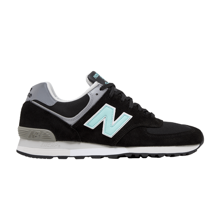 The New Balance 576 MiUK Studio FY7 draws inspiration from the Mediterranean Sea, blending timeless black with turquoise and aqua-blue accents on the tongue and logo. Pearl white outlines symbolize...