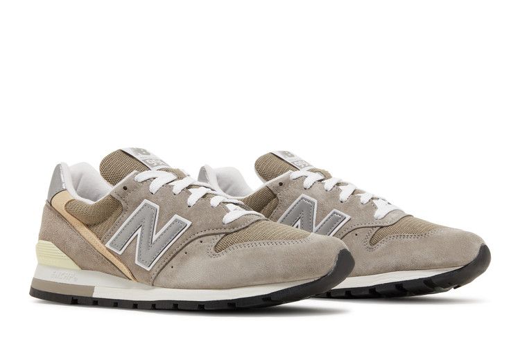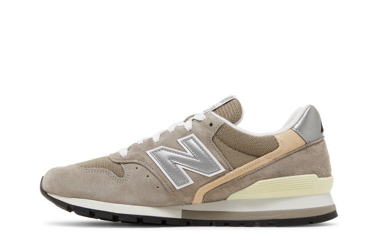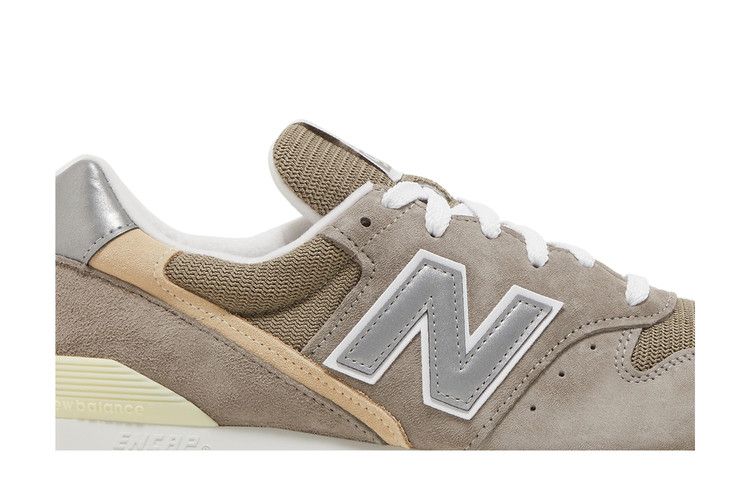 The New Balance 996 MiUSA Gray Silver features at least 70% domestically sourced materials. Its grayish-taupe mesh upper ensures breathability, complemented by lighter suede overlays on key panels. A peachy-tan...