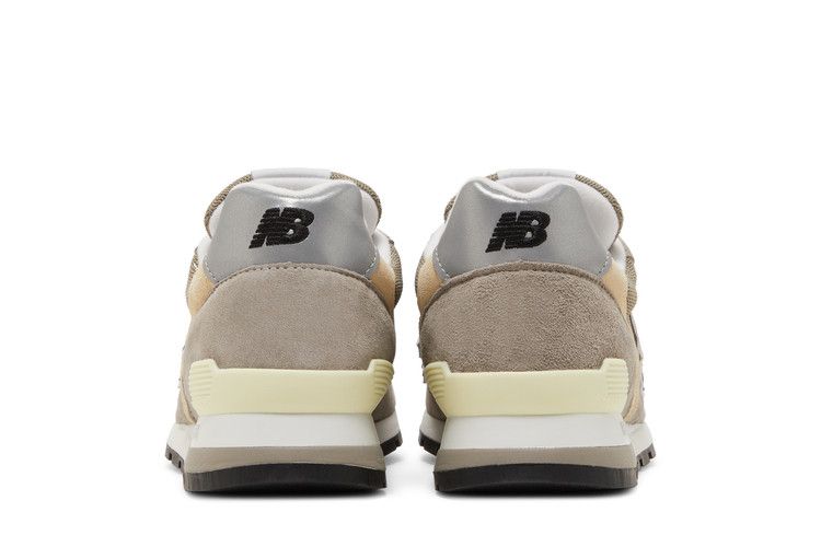 The New Balance 996 MiUSA Gray Silver features at least 70% domestically sourced materials. Its grayish-taupe mesh upper ensures breathability, complemented by lighter suede overlays on key panels. A peachy-tan suede collar adds contrast, while the ENCAP-cushioned midsole offers support and comfort. The black and gray rubber outsole provides traction and impact absorption.