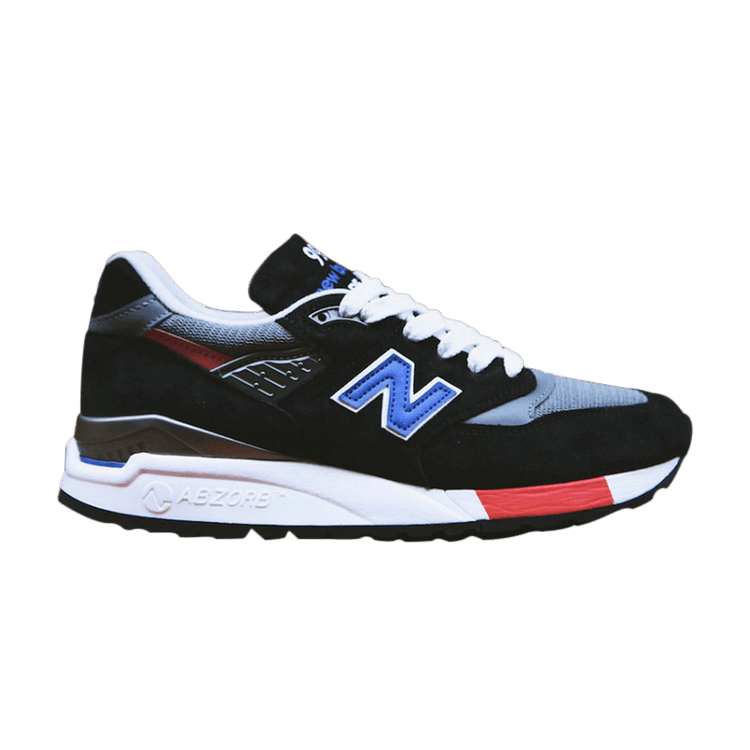 The New Balance 998 MiUSA Black Blue Red is now available at Side Kicks!