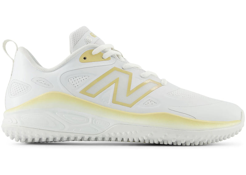 The New Balance Fresh Foam Velo v4 Turf Trainer White Team Gold (Women's) is now available at Side Kicks!