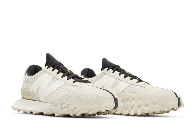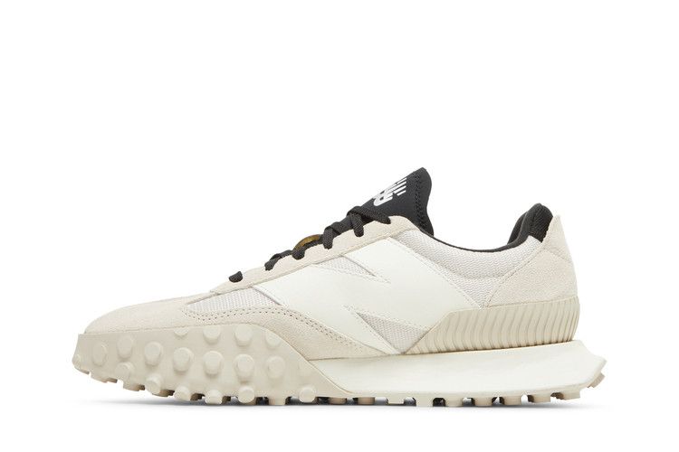 The New Balance XC-72 Moonbeam Black features a cream and beige upper with breathable mesh and suede construction. A herringbone-patterned heel clip provides structural support, while black accents appear on...