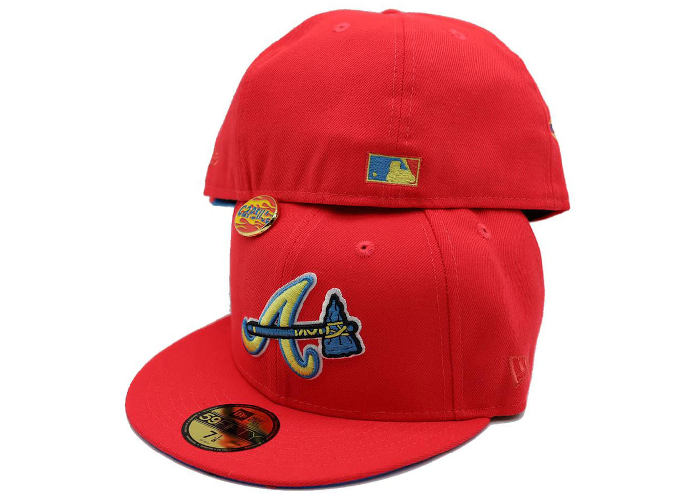 New Era Atlanta Braves Hot Rod Collection Tomahawk Pin Capsule Hats Exclusive 59Fifty Fitted Hat Infrared/Blue