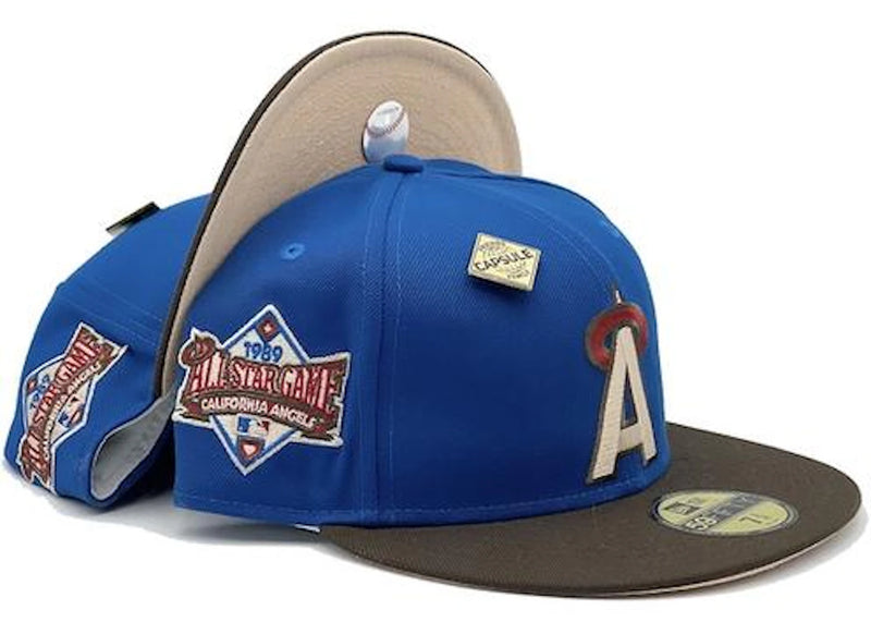 The New Era California Angels Blue Nitro Collection (Friends and Family) 1989 All Star Game Capsule Hats Exclusive 59Fifty Fitted Hat Blue/Peach is now available at Side Kicks!