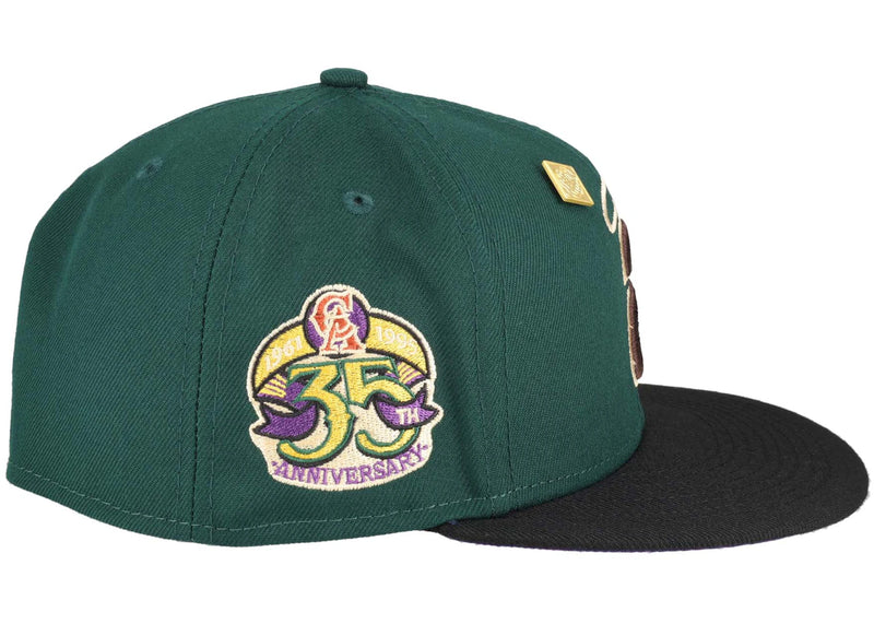 The New Era California Angels Capsule Green Bark 35th Aniversary 59Fifty Fitted Hat Green/Purple is now available at Side Kicks!
