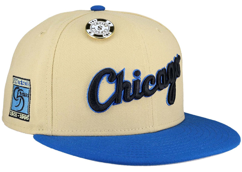 New Era Chicago White Sox Vegas Gold Collection 95 Years Patch 59Fifty Fitted Hat Tan/Grey