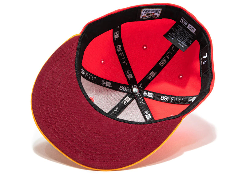 New Era Cincinnati Reds Beer Pack Riverfront Stadium Patch Hat Club Exclusive 59Fifty Fitted Hat Infrared/Light Orange