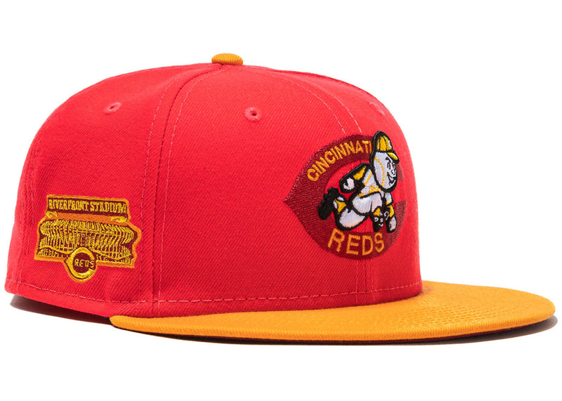 The New Era Cincinnati Reds Beer Pack Riverfront Stadium Patch Hat Club Exclusive 59Fifty Fitted Hat Infrared/Light Orange is now available at Side Kicks!...